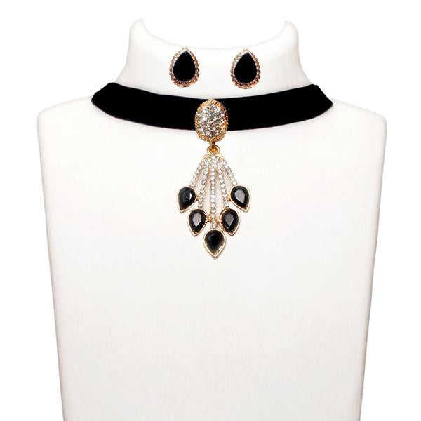 Jeweljunk Black Stone Gold Plated Choker Necklace Fashion Jewelry Set 1108723C