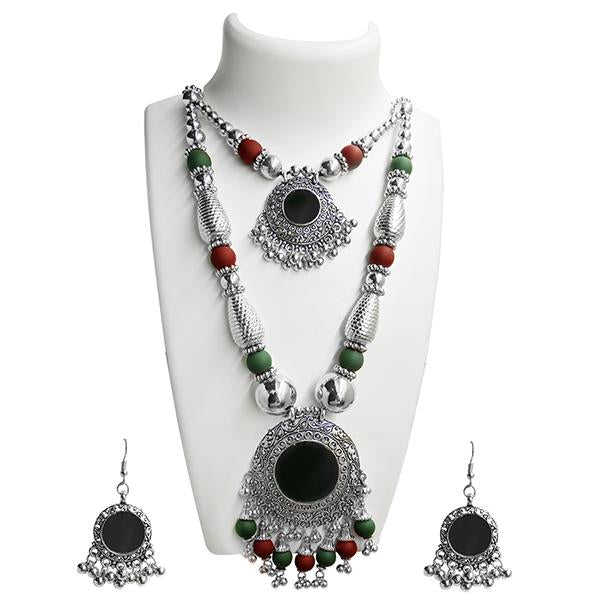 Jeweljunk Navratri Special Maroon and Green Beads Necklace Set 1110907 Fashionable Jewelry for Women