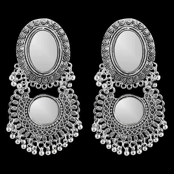 Jeweljunk Vintage Bohemia Silver Plated Afghani Mirror Earrings Ethnical Alloy with Pearl Diamond for Party Wedding Gift-1311567
