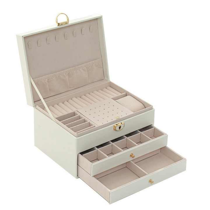 Jewelry Drawer Storage Box with Lock Large Capacity PU Leather Three-Layer Drawer for Necklaces Earrings Bracelets Rings Glasses