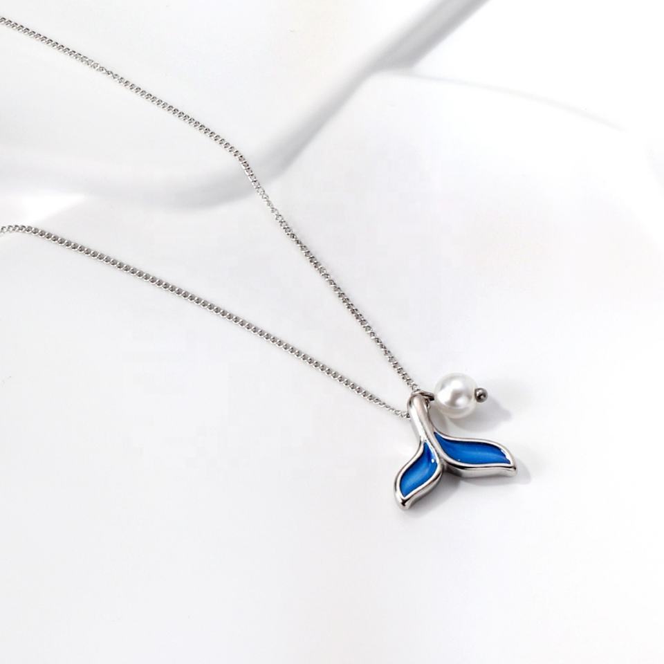 Jewelry Fashion Blue Fishtail Hip-hop Jewelry Custom Pendant Vintage 18k Gold Plated Pearl Necklaces for Men and Women