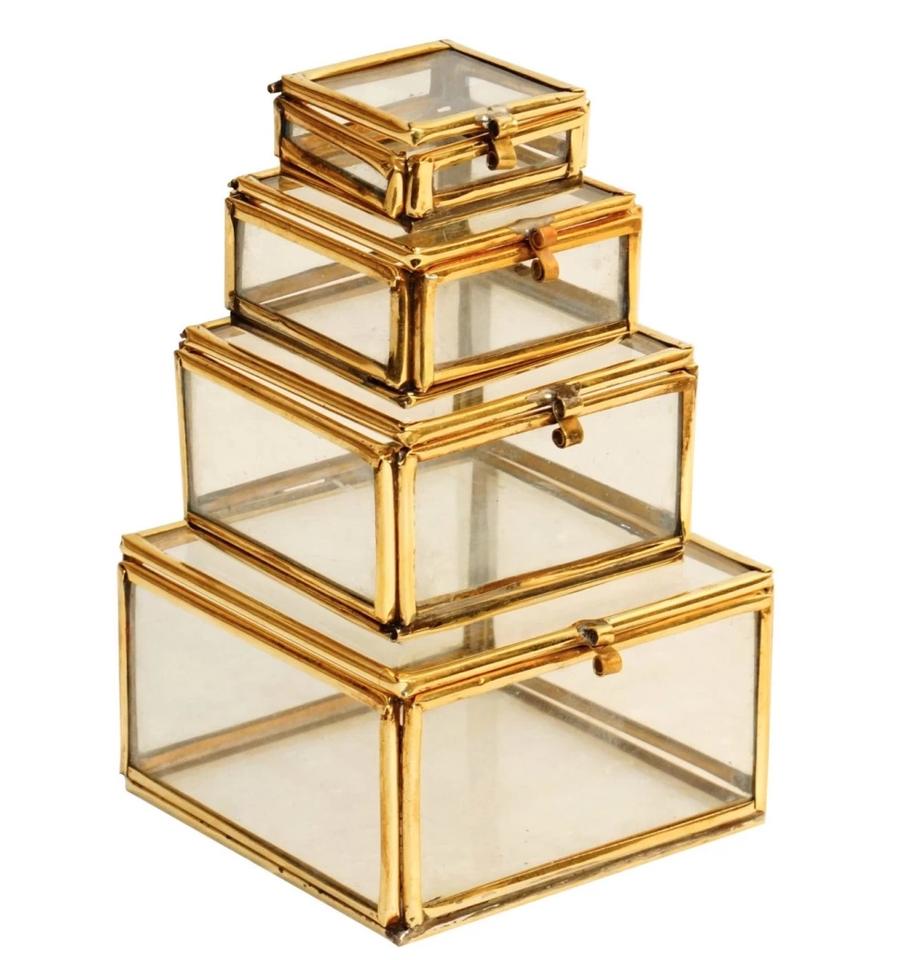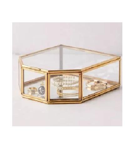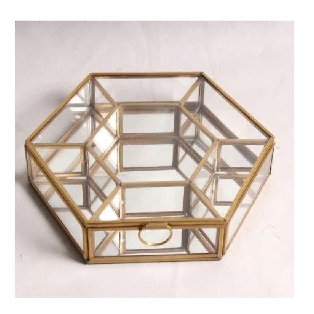 Jewelry Glass Box Hexagon Top Class Quality Handmade New Design Glass and Brass Jewelry Box Customized Design Look Glass Box