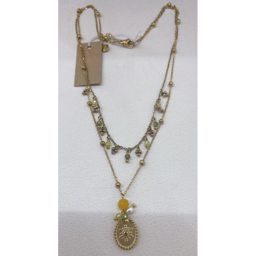 Gold Color Women's Two-Layer Ball Crushing Chain Stylish Necklace