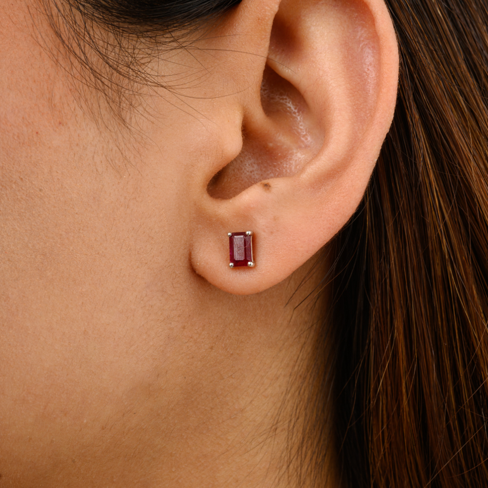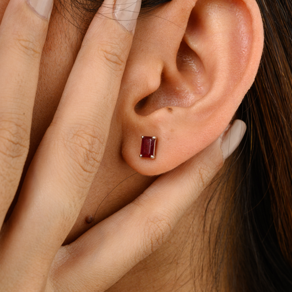 Jewelry Manufacturer Top Quality Baguette Shape Ruby K14 Real White Gold Set in Prong Setting Stud Earrings for Women's