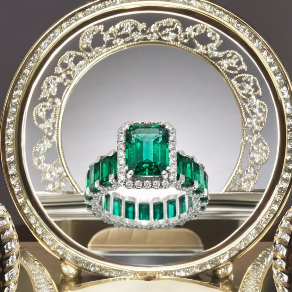Jewelry S925 Silver Square Grandmother Green Diamond Women's Ring High Grade Square Colorful Treasure Ring