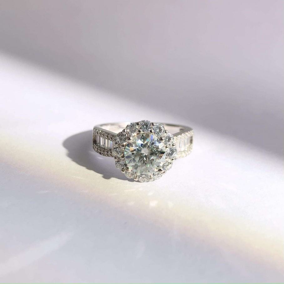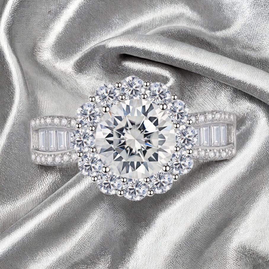 Jewelry Supplier Certified 925 Sterling Silver Platinum Plated Brilliant Cut Moissanite Geometric Prong Setting Classic Ring