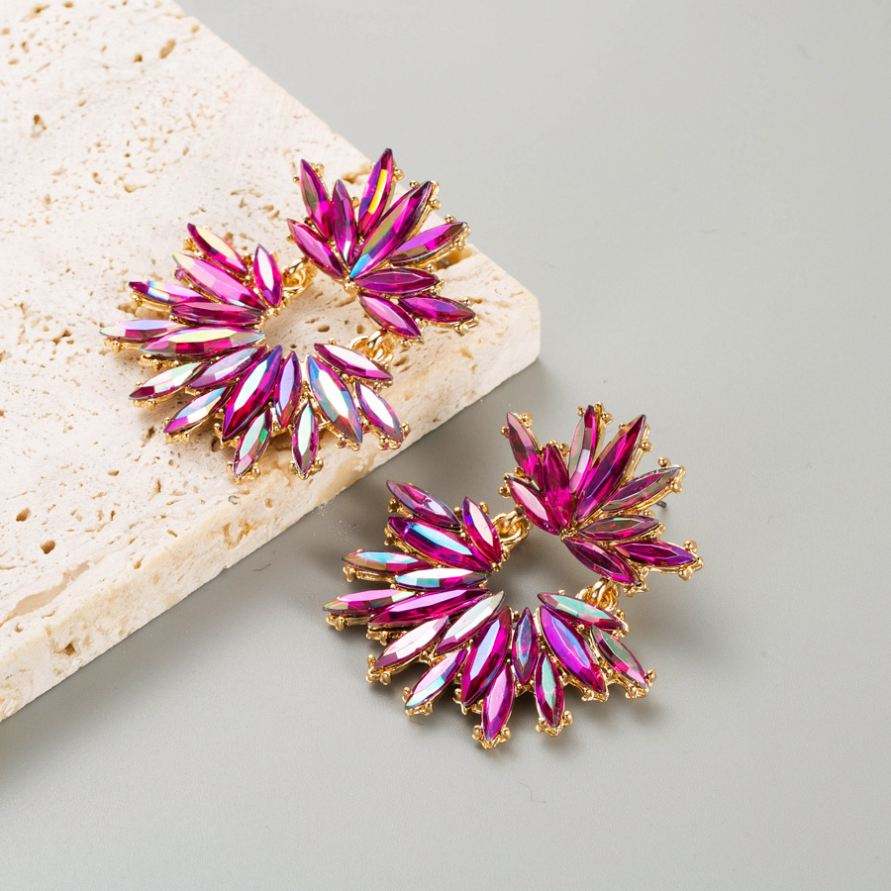 Jewelry Wholesale Exaggerated Women's Personality Diamond Stud Alloy Diamond-Embedded Super Flash Earrings High Sense