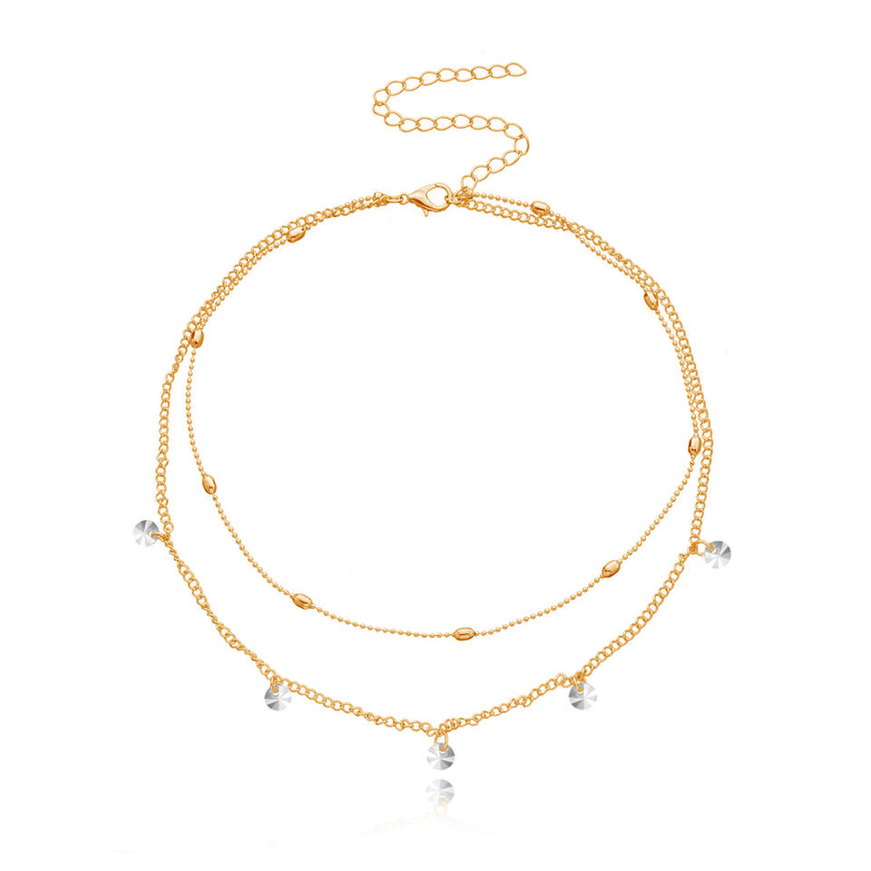 Jewelry Women's Simple Acrylic Rhinestone Pendant Fashion Double Layer Round Bead Chain Necklace