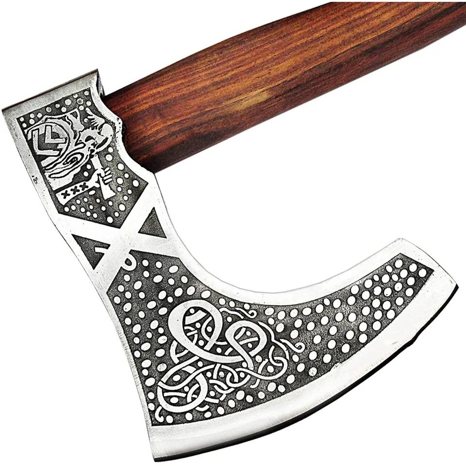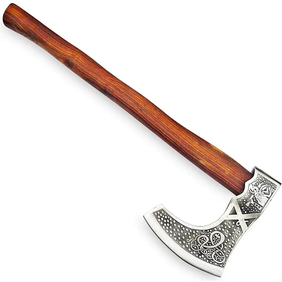 Jexmoo 16\" Custom Handmade Carbon Steel Axe Rosewood Handle Leather Bearded Axe for Outdoor Industrial Father's Day Gift