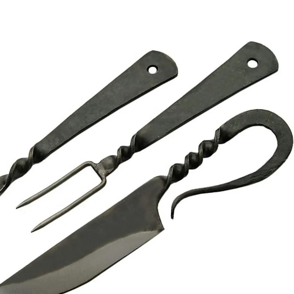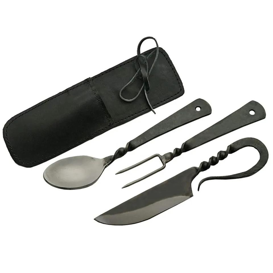 Jexmoo Custom Handmade Antique Medieval Steel Cutlery Set High Carbon Steel Spoon Fork Knife Hand Forged Dinner Set-Gift Chef