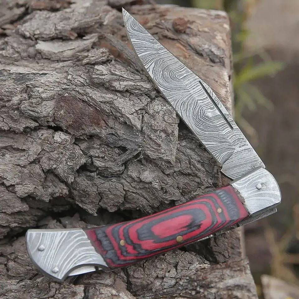 Jexmoo Industrial Grade OEM Custom Handmade Damascus Steel Pocket Knife Leather Sheath for Anniversary Gift Groomsman Present