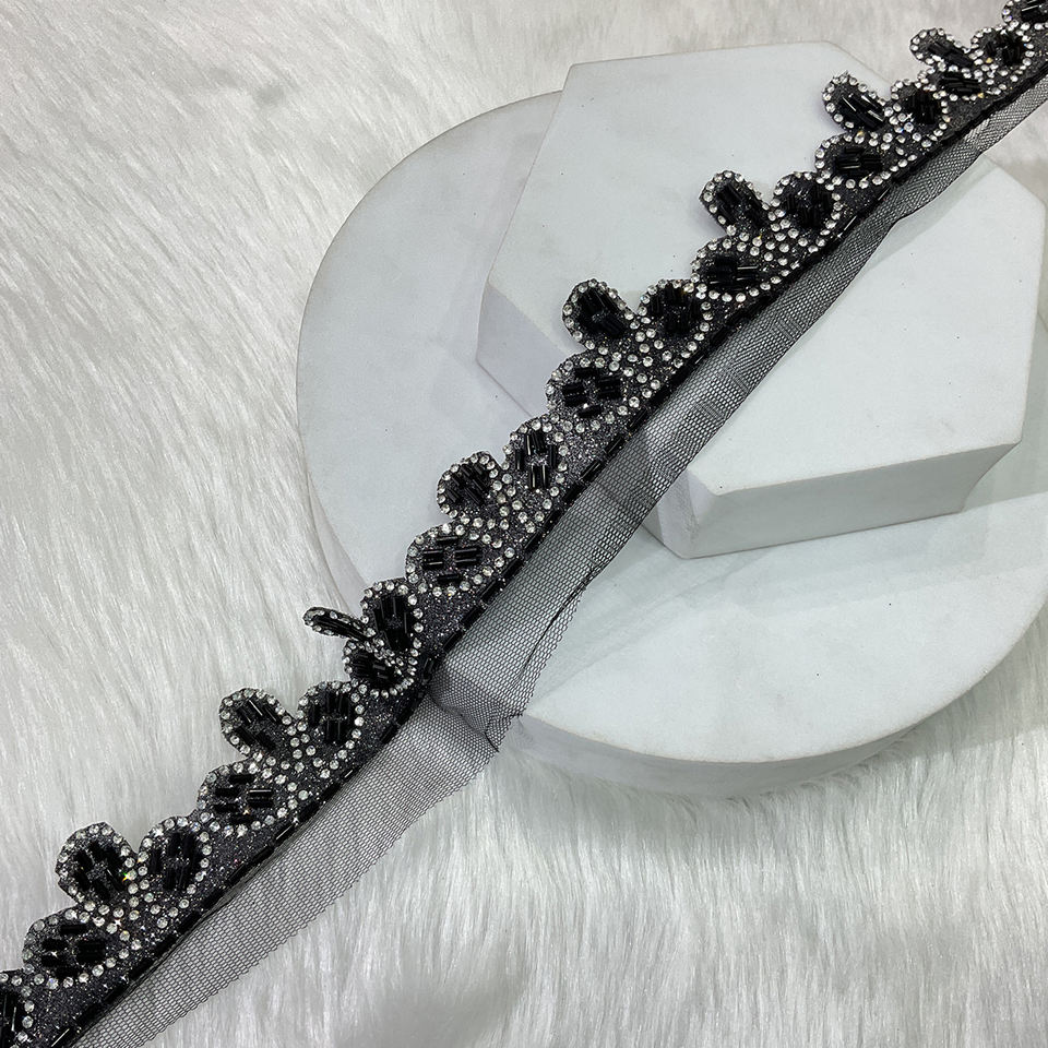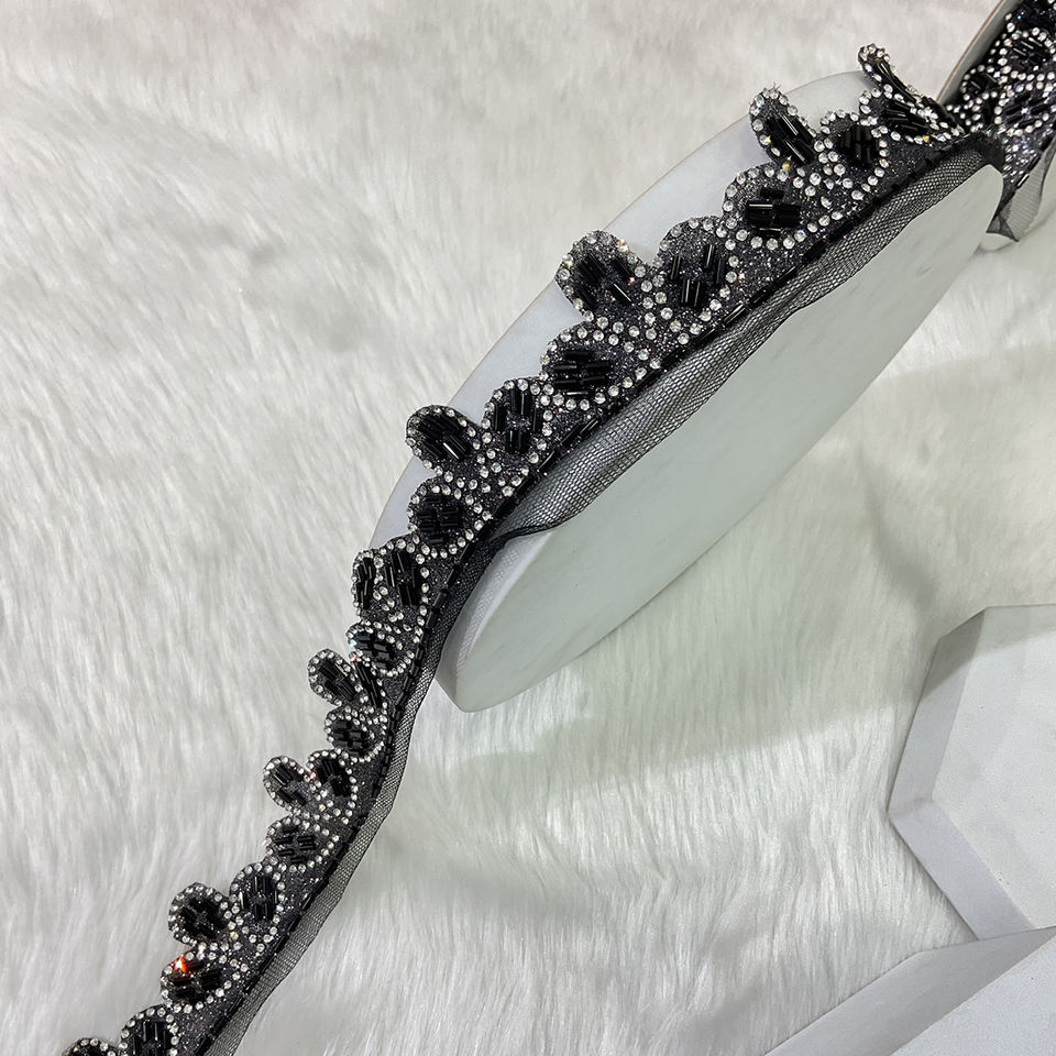 Jharkhand Mini Diamond Designer Lace Handmade Zari & Kasab Border Trim with Sparkling Stones, Sequins & Beads