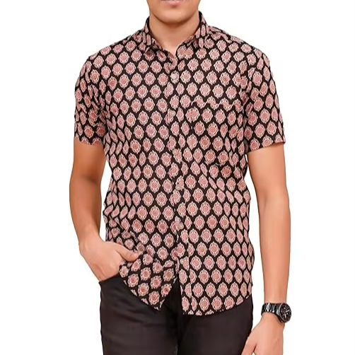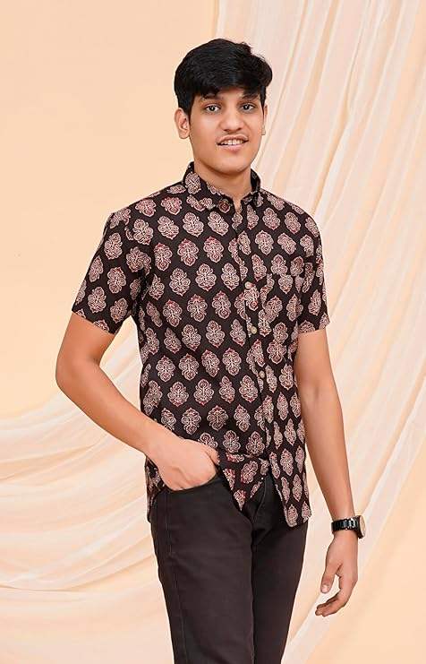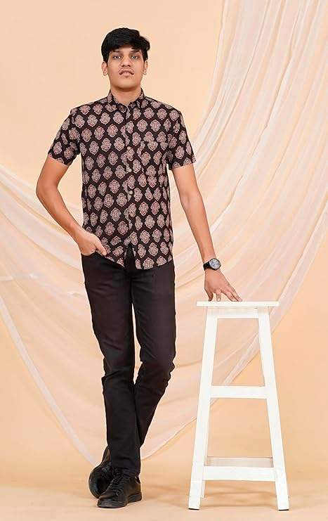 Jiapuri Men Printed Slim Fit Pure Cotton Casual Shirt with Spread Collar and Half Sleeve Sanganeri print men Shirts Fashion Wear