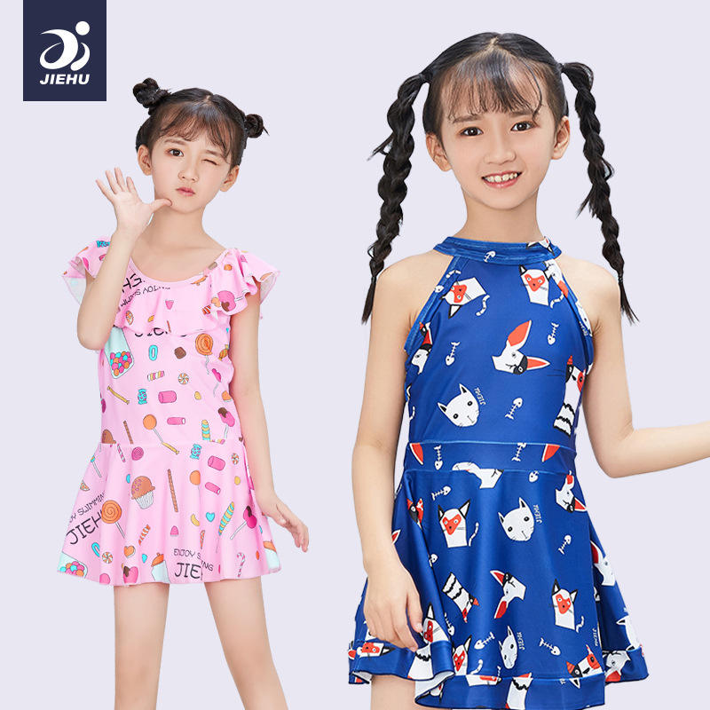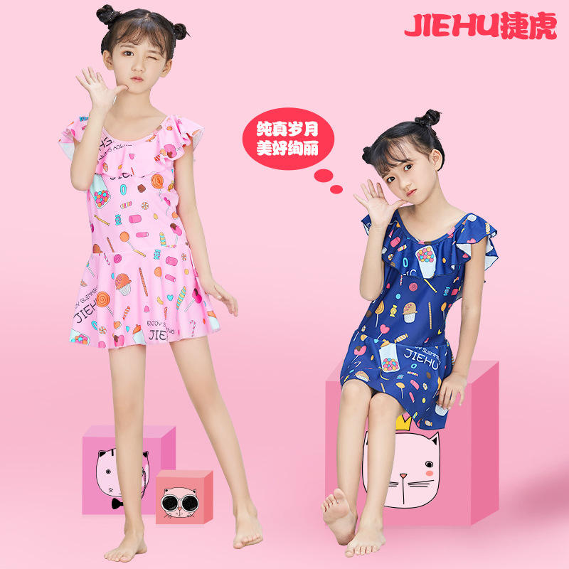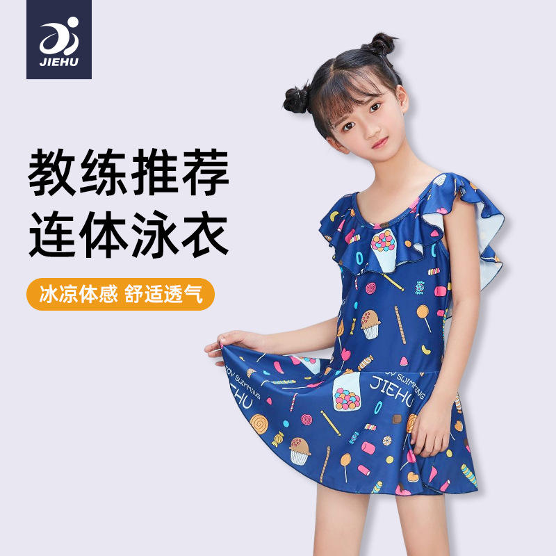 Jiehao Girls Swimwear Candy Print One Piece Quick Dry UPF 30 Swimming Suit For Children Size Medium Large
