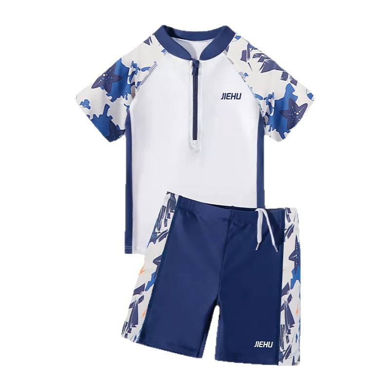 Jiehu Boys Two Piece Swimwear Set Quick Dry Swim Suit For Pool Water Park White Lake Blue JH22408