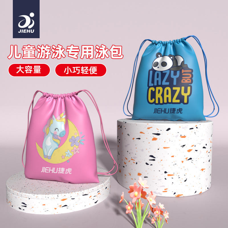 Jiehu Children Swim Bag 30-40L Water Resistant Portable Backpack For Swimming And Water Sports Blue Pink Cartoon Design
