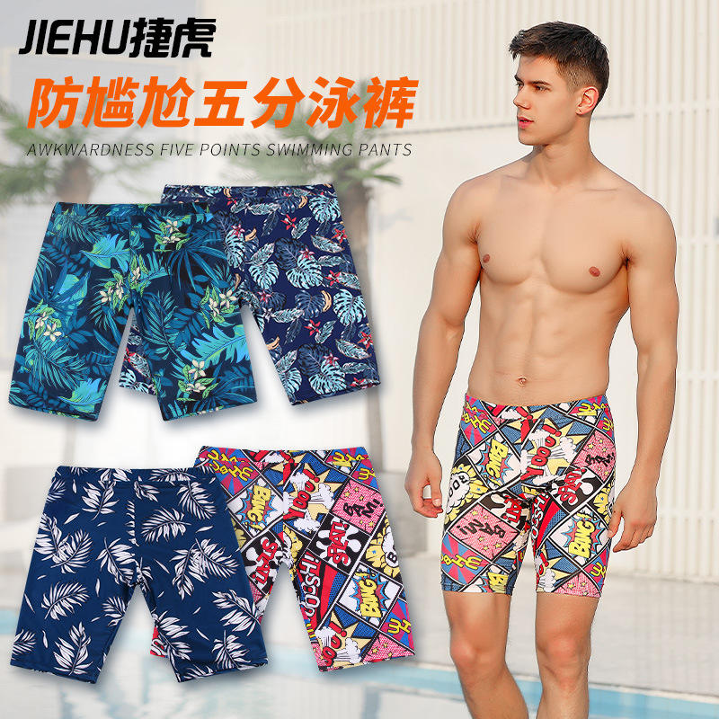 Jiehu Men's Five Point Swim Trunks Quick Dry Printed Beach Shorts For Swimming Water Sports Fitness Body Shaping