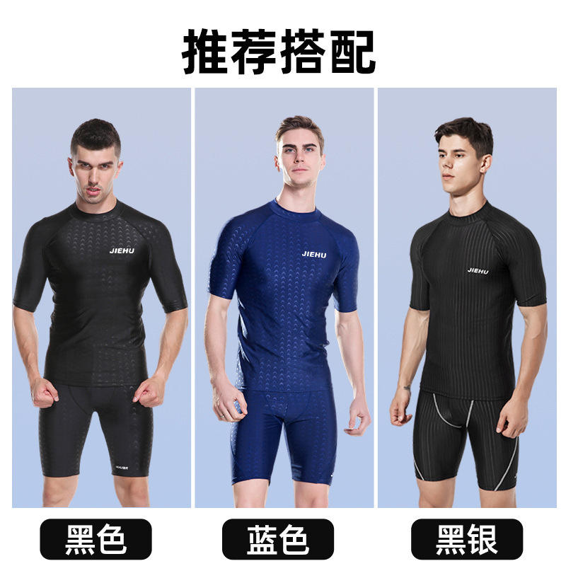 Jiehu Men's Swimwear Set Quick Dry Fitness Swimming Trunks Mid Waist Pattern Knitting Adult