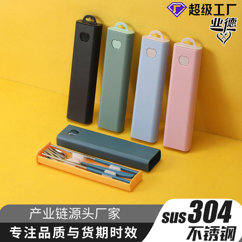 Jieyang 304 Stainless Steel Portable Cutlery Set Fork Spoon Knife Chopsticks Rectangular Case Camping Outdoor Travel Student Use