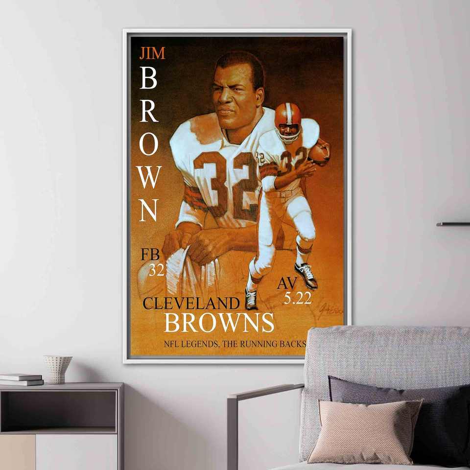 Jim Brown Artwork Canvas: Browns Wall Decor - Printed American Football Art,White Framed