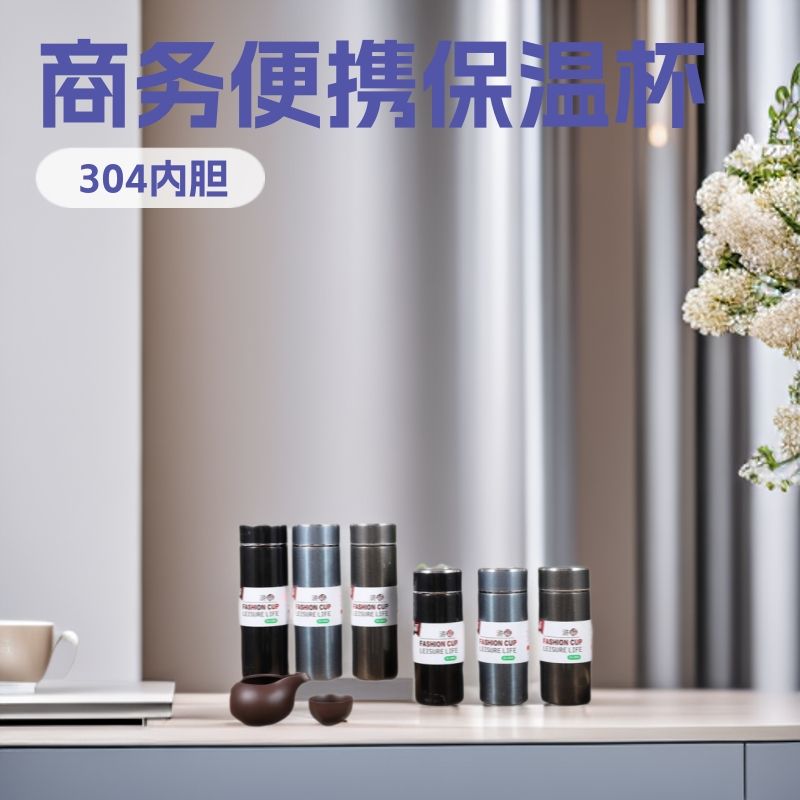 Jin Fu Fashion Cup 304 Stainless Steel Insulated Thermos Black Straight Shape Portable Tea Brewing Gift Set