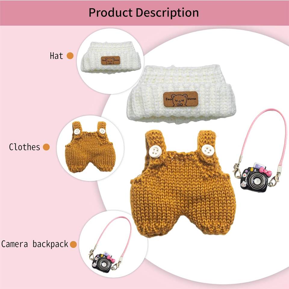 Jin Shine 17cm Doll Clothes Set with Glass Material DIY Accessories Includes Outfit & Hat for 6.7-Inch Dolls Ages 17+