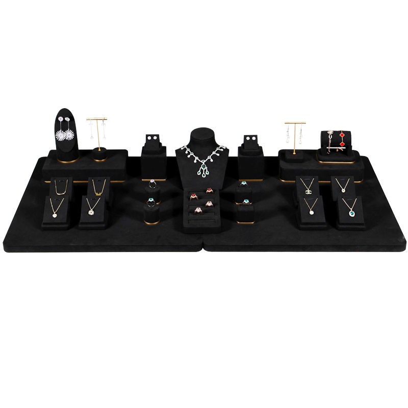 Jinsky Black Microfiber Jewelry Rack Set Bracelet Ring Necklace Earrings Display Stand Props for Store Showcase