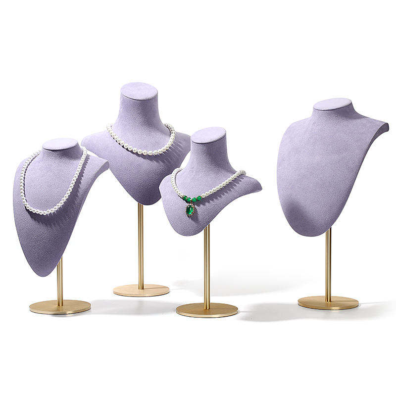 Jinsky Classic Beige Pu Body Velvet Jewelry Display Bust Necklace Pendants Mannequin Jewelry Stand Choker Holder