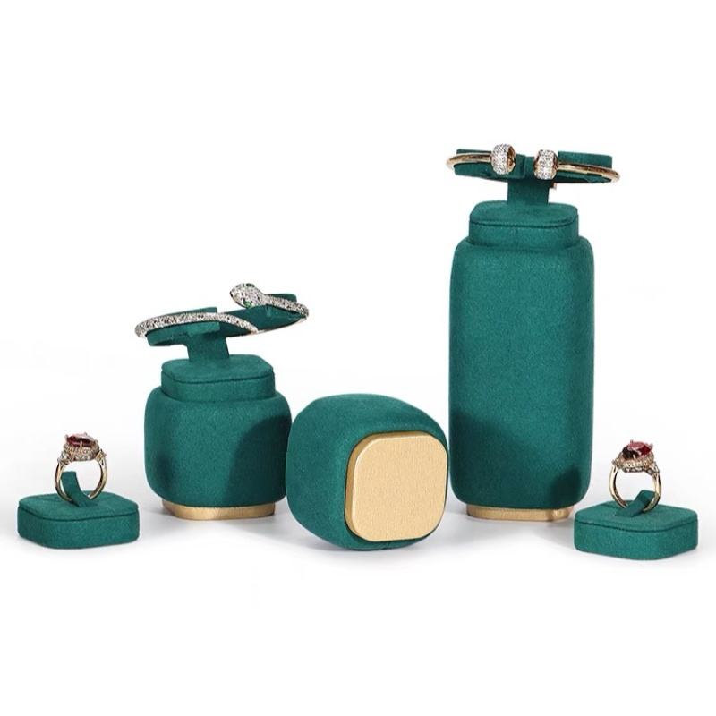 Jinsky Custom Deak Green Microfiber Metal Jewelry Display Stand Showcase for Earrings Ring Necklace Bracelet Jewelry Display Set