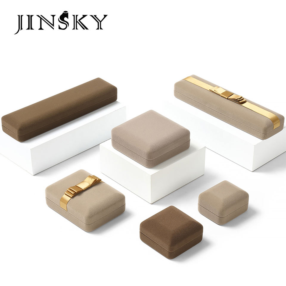 Jinsky Velvet Jewelry Storage Box Ring Earring Pendant Bracelet Flat Knot Box for Jewelry Packaging