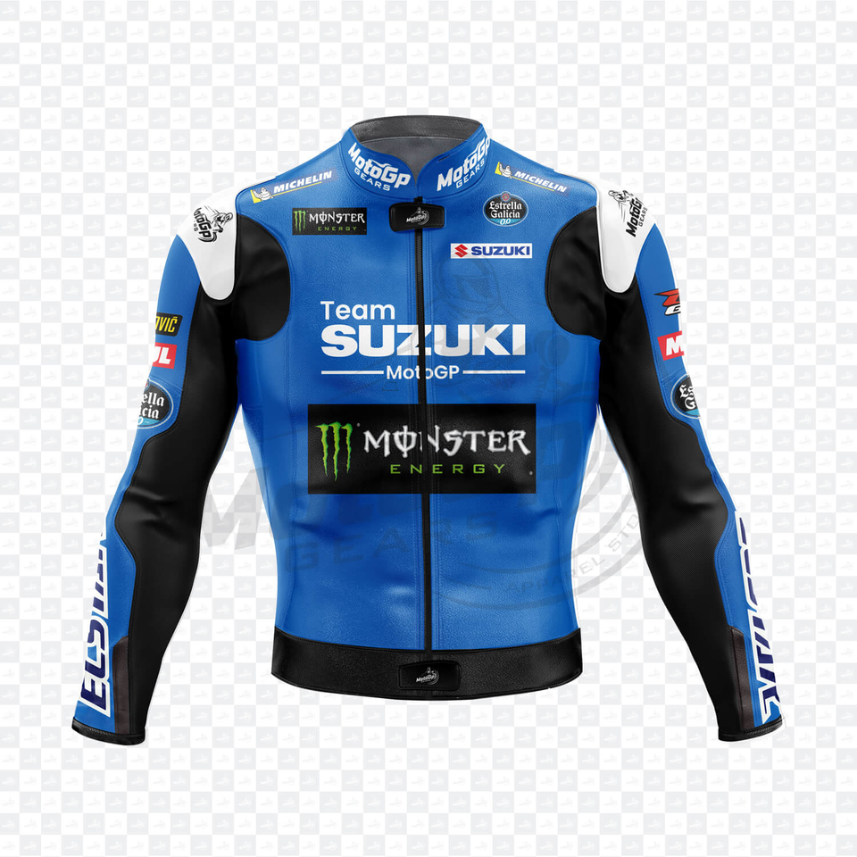 Joan Mir Zuzuki MotoCP Cowhide/Kangaroo Leather Track Riding/Racing Made To Measure Hump Mens Biker Jacket CE Protectors