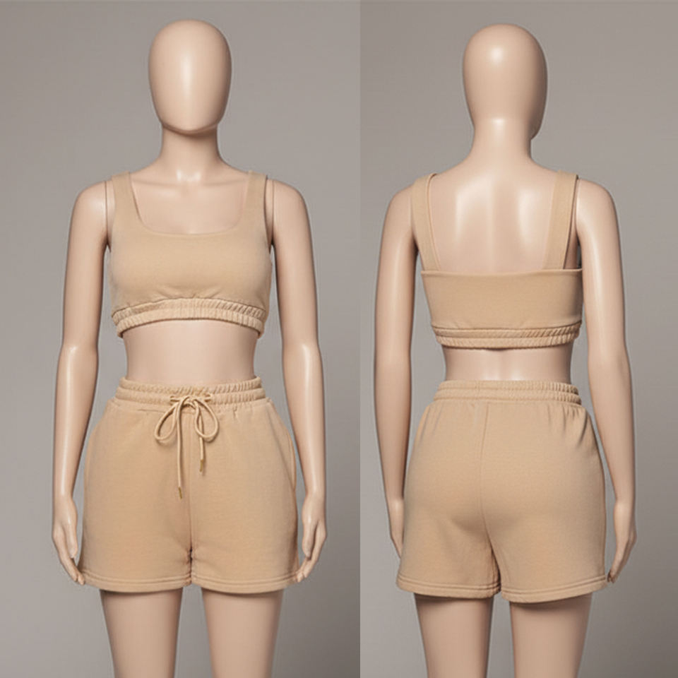 Jogging Wear Solid Crop Top Bra Short Women Plus Size Two Piece Set Shorts 100% Cotton Breathable 2024