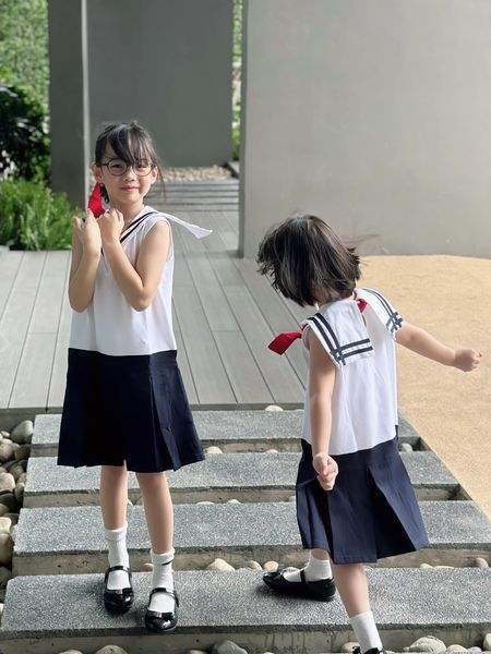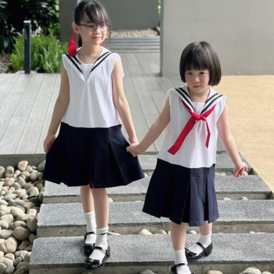 Jolie Halter A-Line 100% Cotton Baby Girl Sailor Japanese Style Sleeveless Dress Mix Red Knee-Length Wholesale Stock- Children