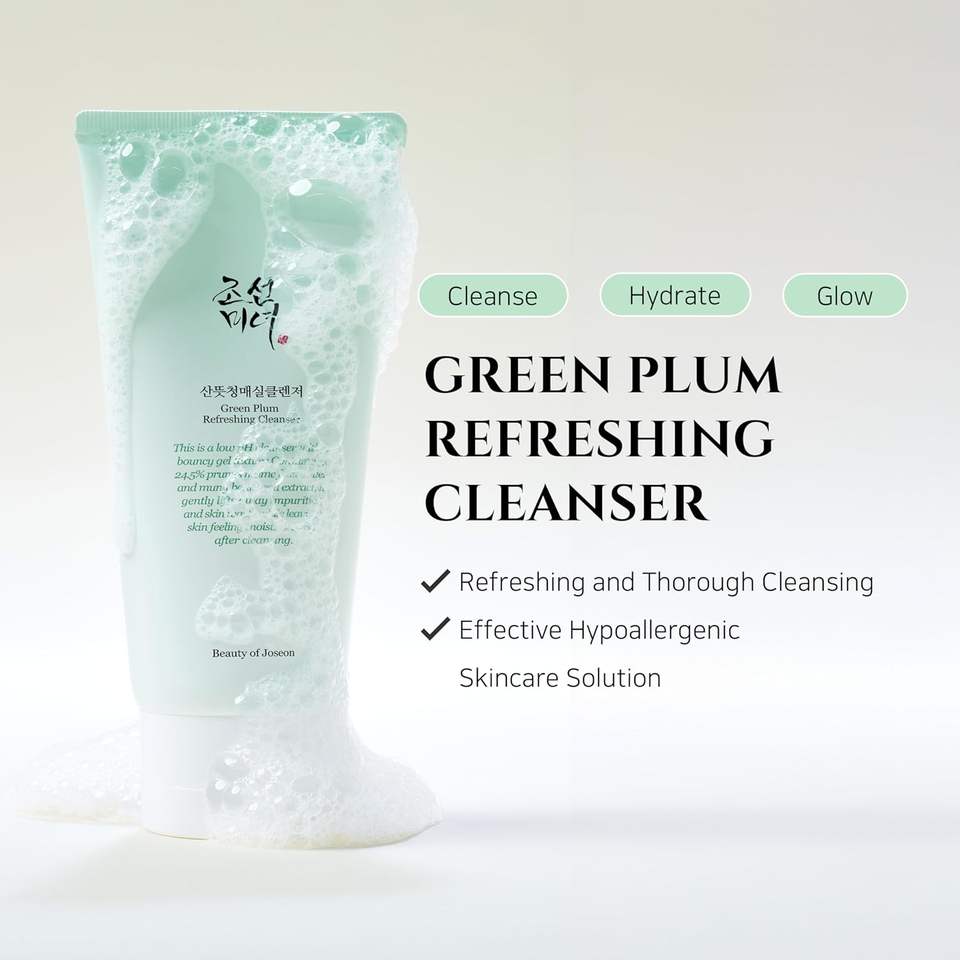 Joseon Dynasty Beauty Firming Hydrating Face Moisturizer with Green Plum Refreshing Cleanser Gel for Dry Skin