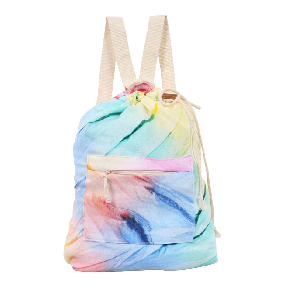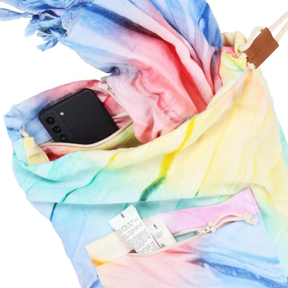 Joy Tie Dye Transformer Bag Custom Beach Towel With Zipper Pocket Sand Free Bath Towel Logo Customized Print 100% Cotton Rainbow