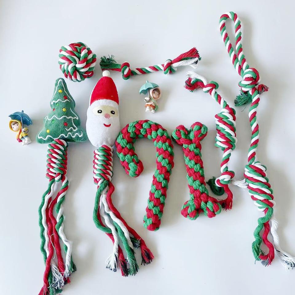 Juguete Para Mascotas Dog Toys For Aggressive Chewers High Quality Luxury Indestructible Christmas Pet Dog Rope Chew Toy