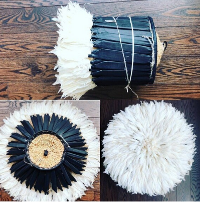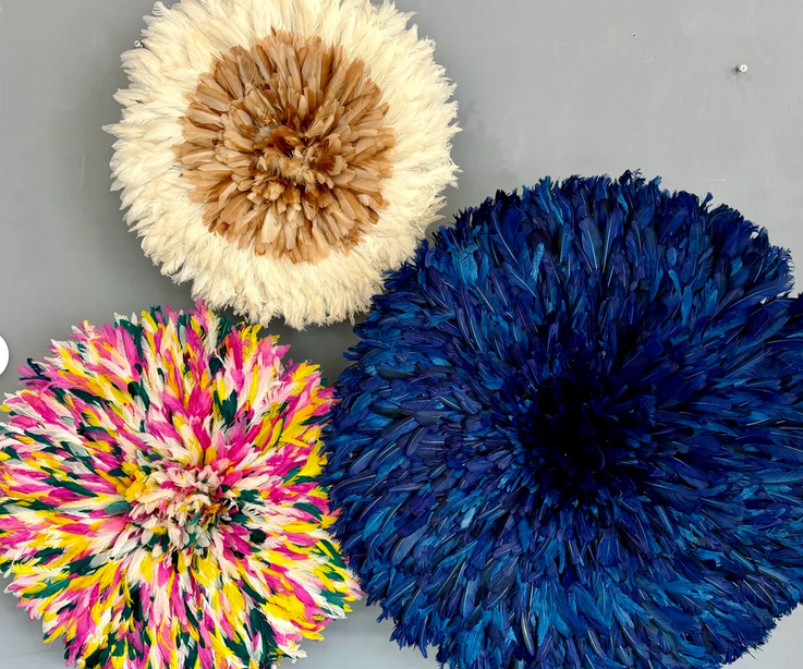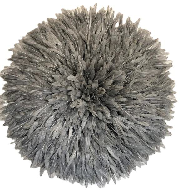 Handmade Gray Boho Style African Juju Hat Wall Decor Bamboo Headdress with Feather Mandala for Home Decor