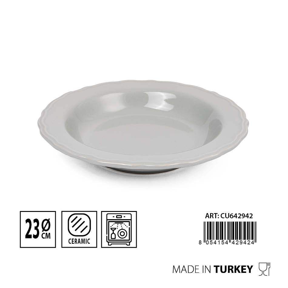 Julieta 23 cm Light Grey Ceramic Flat Plate Customizable Soup Plate Tableware for Restaurants and Hotels