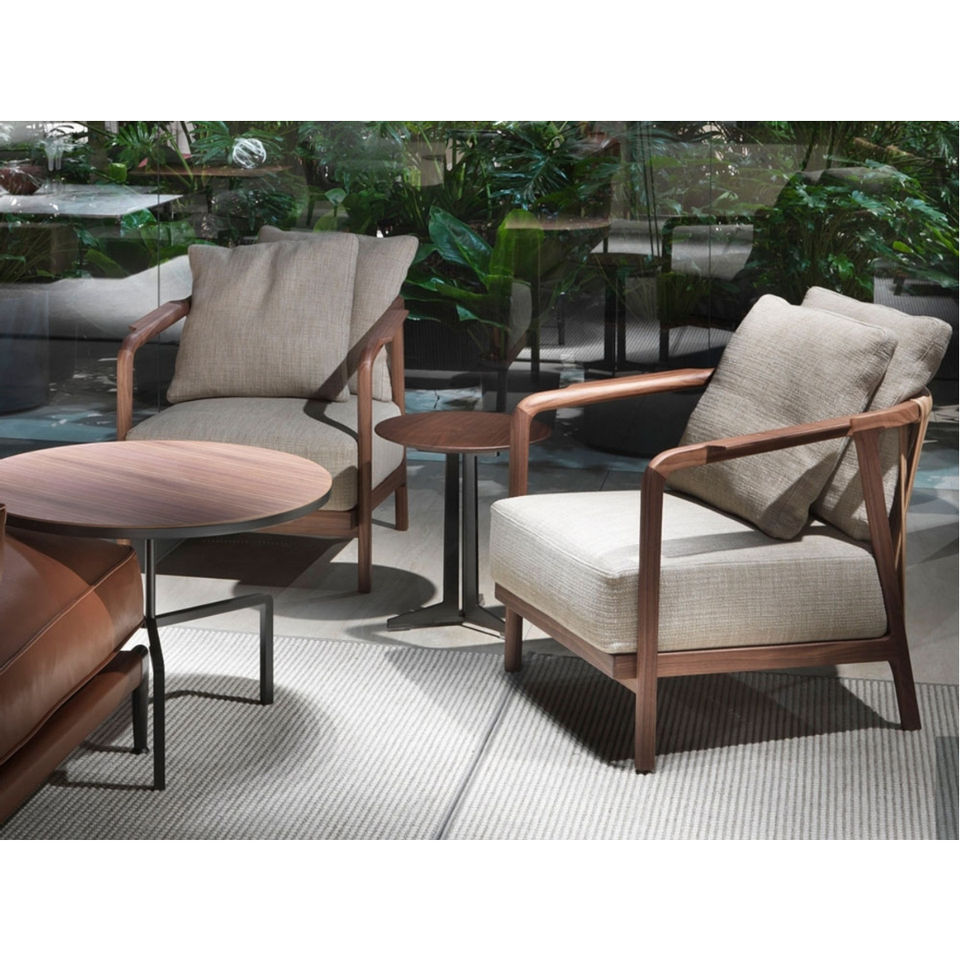 Julietta Solid Teak Wood Woven Rope Lounge Chair Modern Leisure Chair with Thick Padding Walnut Finish for Hotels Outdoor Use