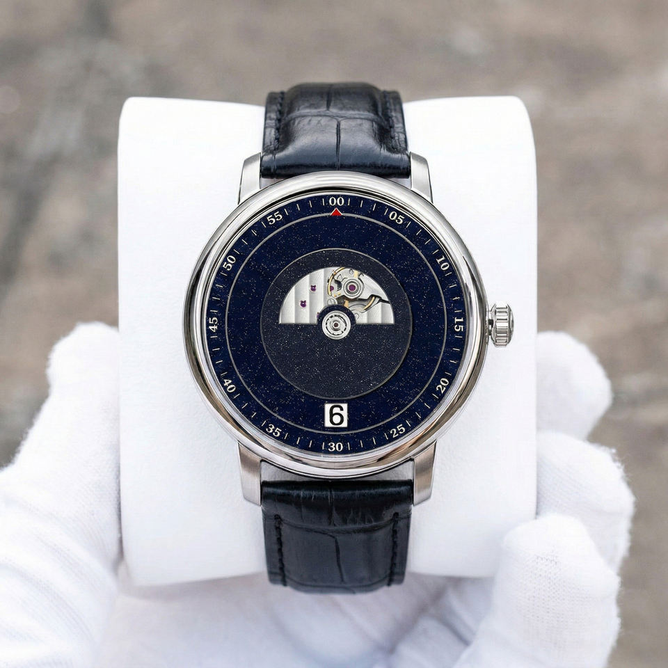 Jumping Hour Watch OEM Manufacturers Customized Logo Luxury Men's Mechanical Automatic Central Rotate Rotor Blue Aventurine Dial
