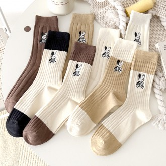 Juncap Women's Mid-Length Socks Black Rabbit Print Comfortable Stockings for Spring Summer Fall Winter for Students Adults