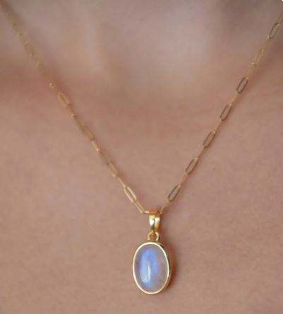 June birthstone jewelry natural cabochon rainbow moonstone paperclip chain necklace 18k gold plated statement pendant necklaces