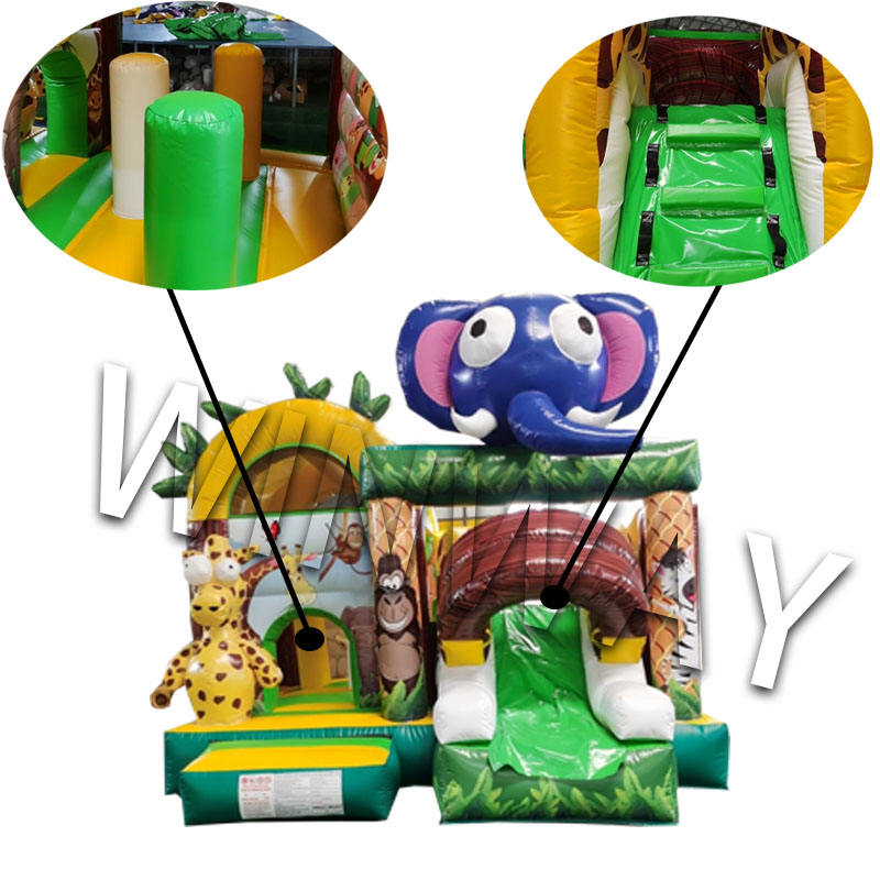 Jungle Animal Inflatable Bounce House Castle Commercial Grade with Bouncer Slide Bouncy Jumping Combo for Kids Outdoor Play