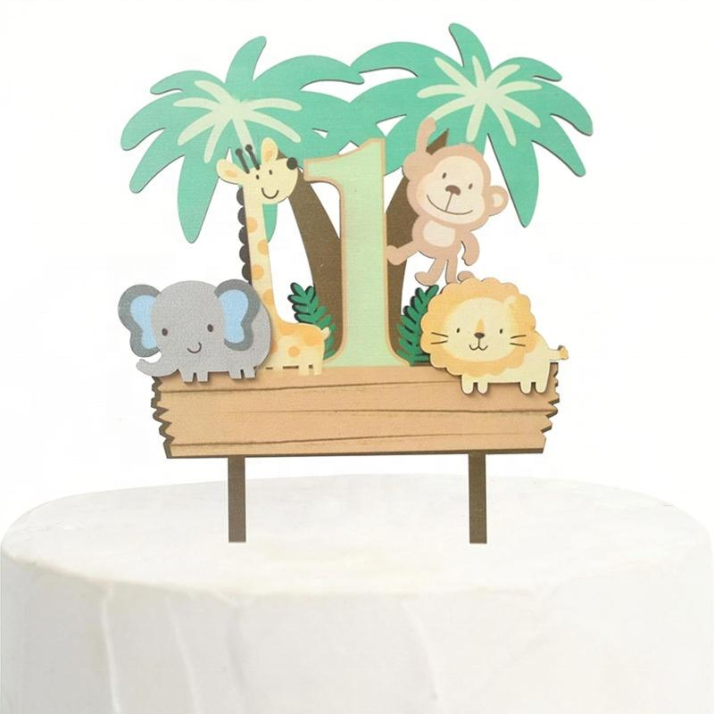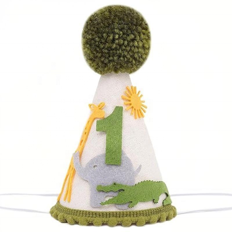 Jungle Animal Theme 1st Birthday New Year Party Decoration Set High Chair Banner Lion Birthday Hat Cake Topper Durable Fabric