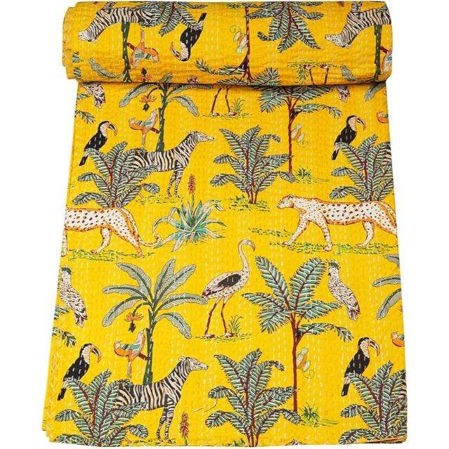 Jungle Print Bohemian Kantha Quilt Vintage Cotton Bedding Quilts Throw Blanket Gudari Indian Rajasthani Bedcover for Hotels