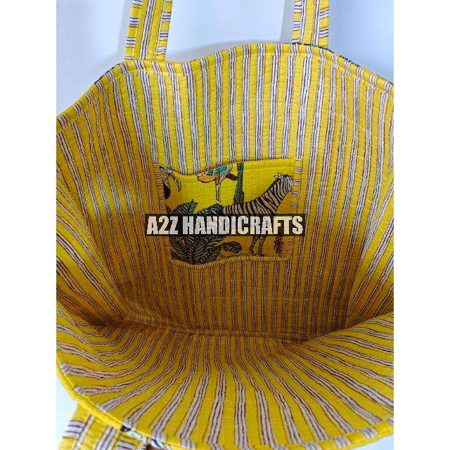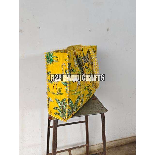 Jungle Print Boho Tote Bag Eco-Friendly Large Cotton Quilted Reversible Two Straps Open Grocery Shopping Flower Handbag