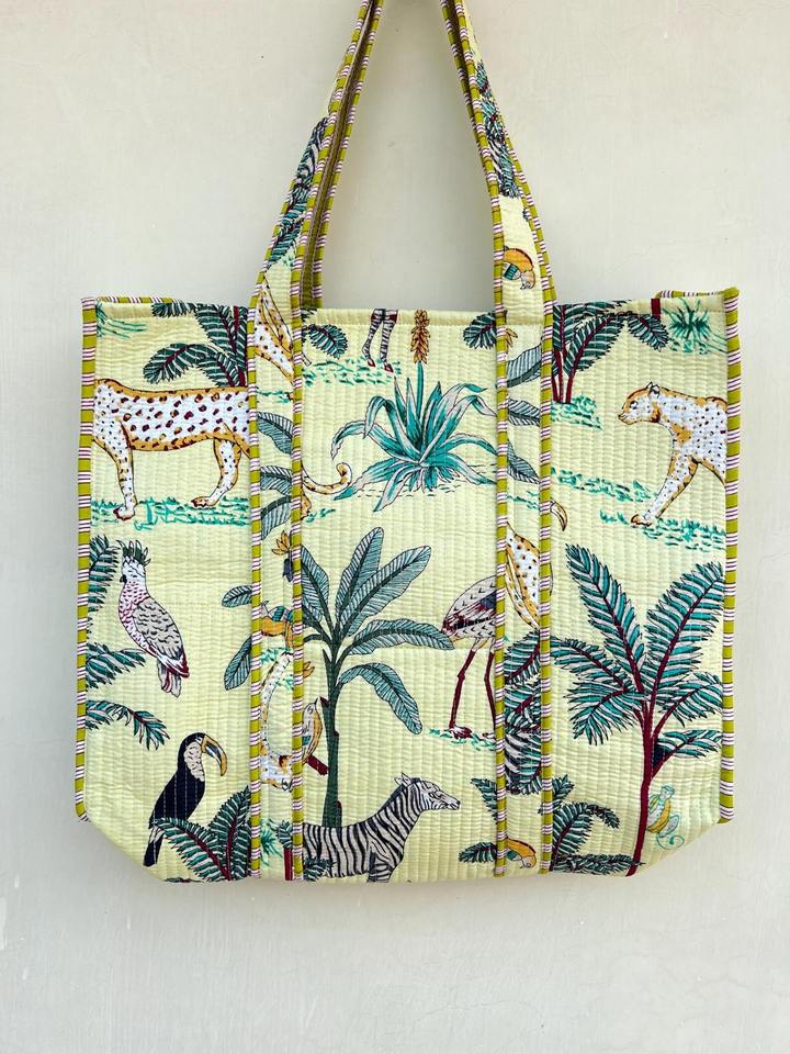Jungle Print Market Tote Bag Bohemian Summer Quilted Cotton Tote Bag Bulk Festival Gift Large Travel Shopping Sports Picnic