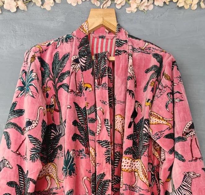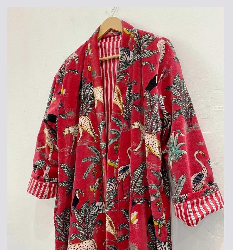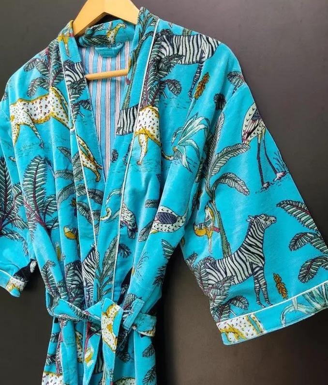 Jungle Safari Print Robe Velvet Kimono Plus Size Cotton Velvet Jacket Dressing Gown Bridal Robe Women's Casual Women Wear Gift