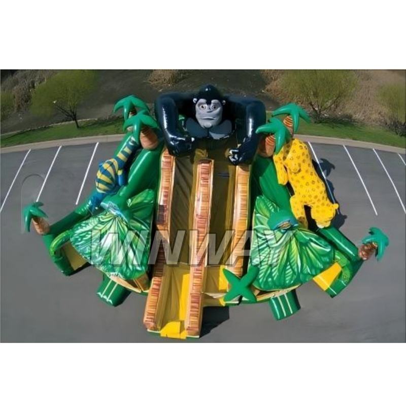 Jungle-Themed Inflatable Water Slide Park with Gorilla and Leopard for Outdoor Fun