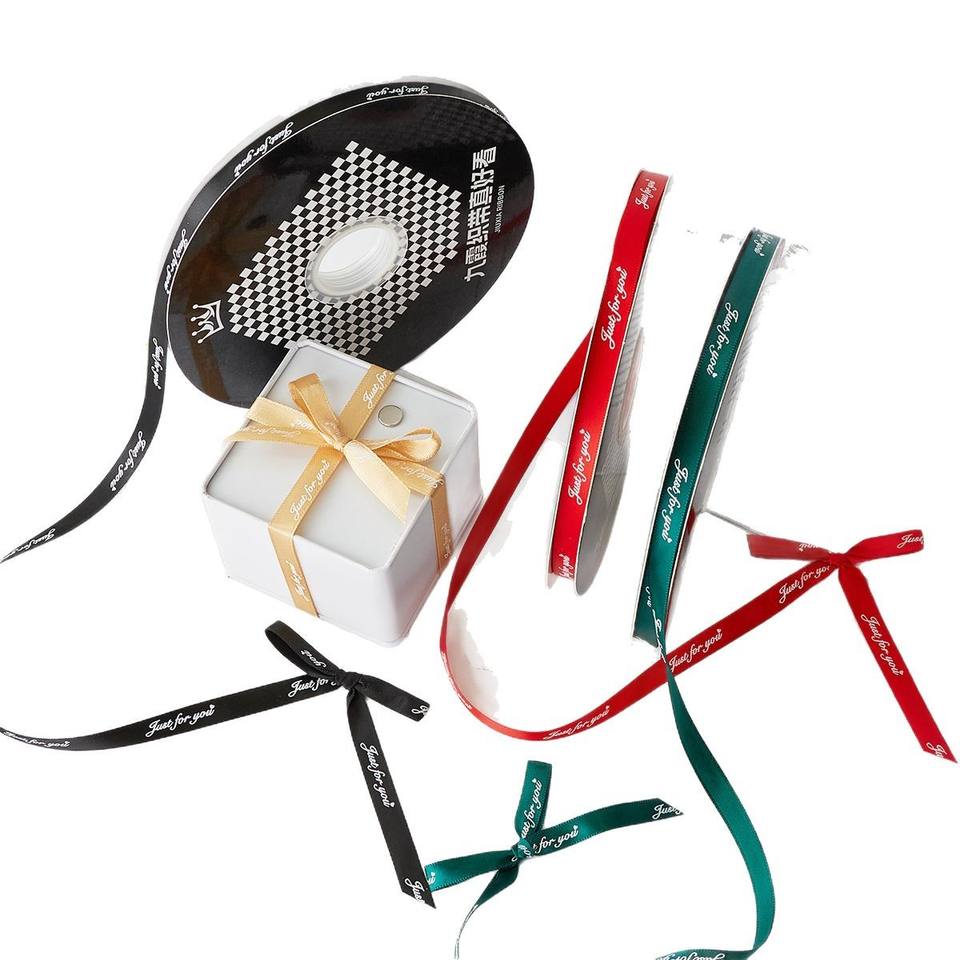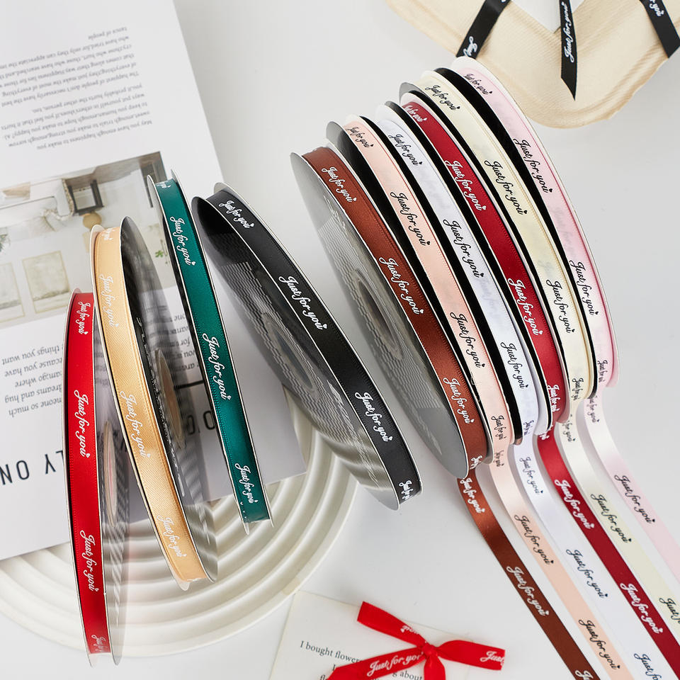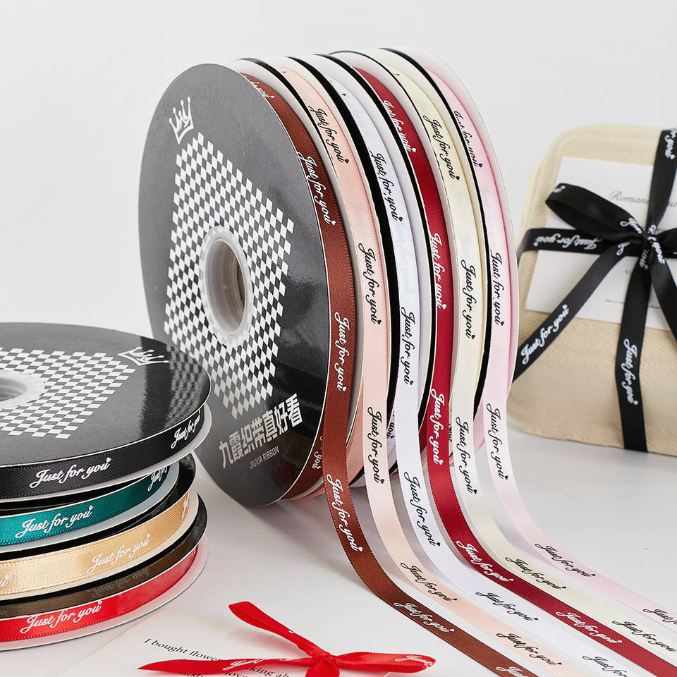 Just For You Ribbon Spool 1Cm Polyester Valentine's Day Gift Decoration Bow Wrapping Cake Box Solid Color Printed